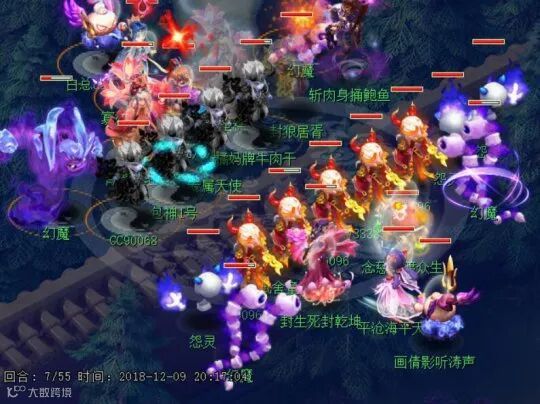 战斗开始!首回合,双方都在加状态,观战方第二回合召唤出全场首条幻魔,两边开局都是清宝宝,没有选择点杀,以前的点杀流在现在的比赛中已经比较少见了,在第五回合,双方幻魔成型,对战方其中一只幻魔是大牛,看样子是想省一只宝宝。