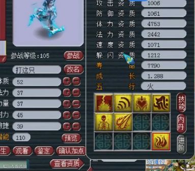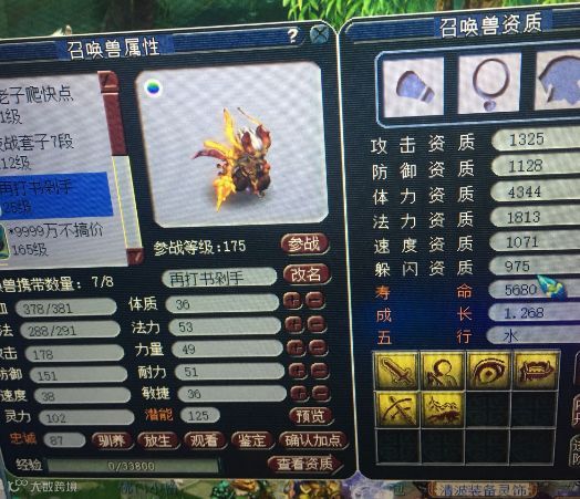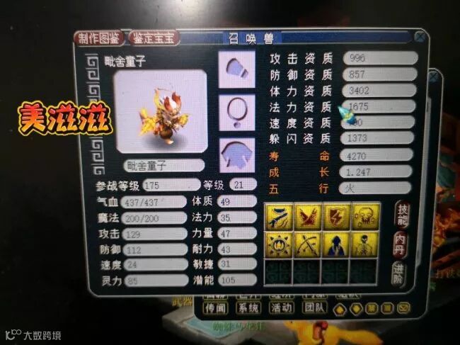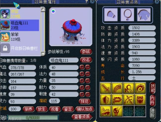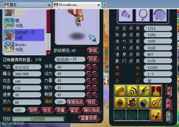 下面是一只打书成功的全红童子!不过这技能格子是不是太少了呢?而且资质、成长也不是很出众,摆上CBG的话,可能也就3000R左右的样子,而且大多数玩家看中的是成品。。。