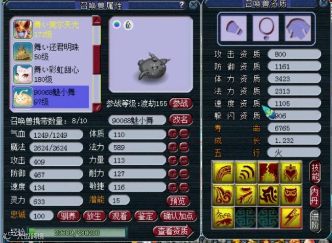 下面这只混沌兽,同样出自魅小舞之手,感觉全服第一的都要收归到她仓库里了。本来混沌兽就是稀有宝宝,想抓一只尚且不易,更别谈合出10技能了,其塑造难度可想而知!诶~~不过话说回来,下面有个法术技能似乎可有可无的,你能找出来吗?