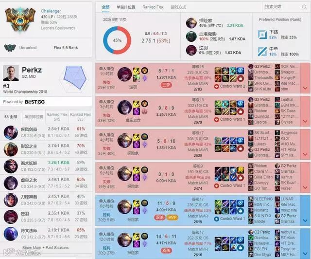 我们查看Perkz的战绩发现,他最近确实在练习ADC,不过不得不说阿P的ADC胜率确实是不高,下路ADC的胜率只有百分之三十三。看到阿P转到ADC位置,很多国内的观众乐了,阿P这次世界赛给我们的印象就是很皮,尤其是很针对RNG,但是最后还真让阿P笑道了最后。这次转型到ADC位置,那么阿P就能和UZI对对线了,以前阿P在中单没有和UZI对线的机会,这次机会来了!