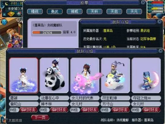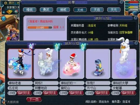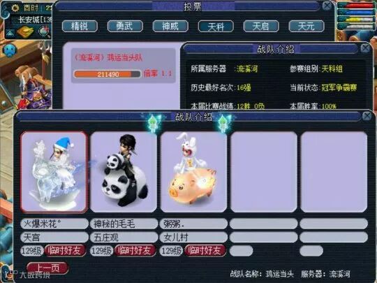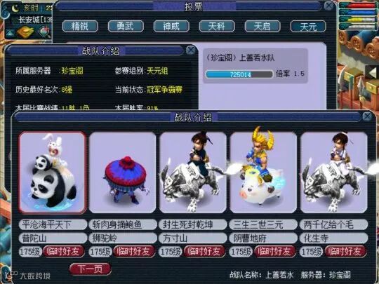 不知道大家有没发现,天科组的力五庄基本上是队伍标配,除开能封印点灯外,奇经八脉是一个很重要的因素,当力五庄叠满滂沱buff后,伤害简直可以用爆炸来形容,所以力五庄是一定会有,超级神马作为开场神兽,和封系搭配也没毛病,不过五庄可以解方寸的封,所以敏天宫和女儿的出场率会高于方寸,配置一个女魃墓也属正常,流溪河双五庄出场也不是没可能,怎么说呢?看好流溪河吧!
