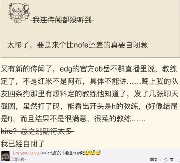 Heart离开后,目前LPL在S9的三支队伍RNG、EDG和IG都没有主教练了,那么他们的去向也困惑着所有LPL的观众们,德杯在即,这三支队伍同时失去主教练,那么让队员的BP自己去做吗?一瞬间网络上众说纷纭,但是有一个网友在Heart离职之前,就已经爆料了一条消息!