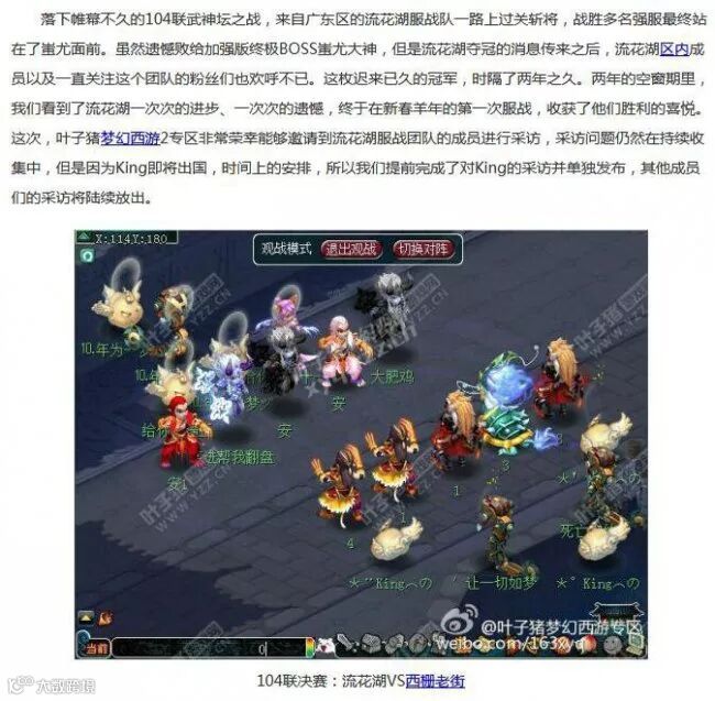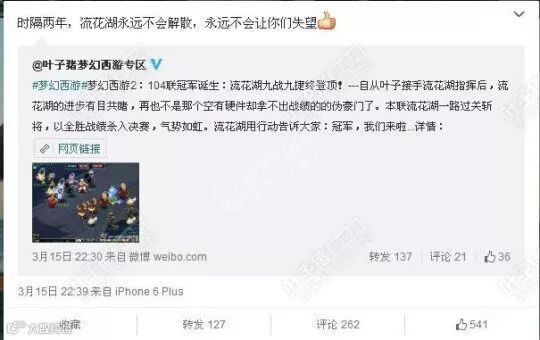 不得不说,流花湖团队的解散,令玩家们都有点措手不及。早在15年3月中旬,也就是104联服战流花湖夺冠后,叶子猪曾专访过King,那时king曾说过,“只要我还有这个能力支撑这个团队,流花湖就不会散”,并要陪伴梦幻一起变老。