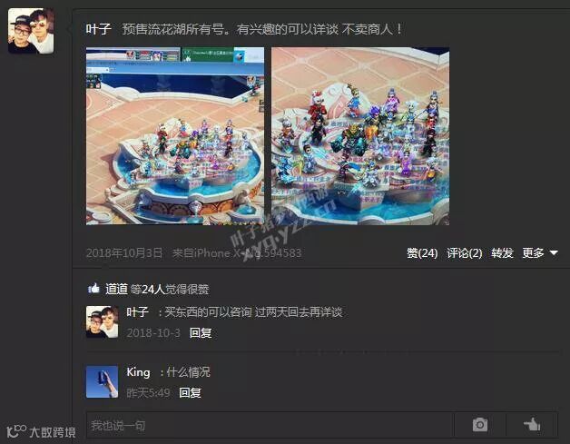 10月3号凌晨3点,似乎是流花湖服战队的不眠夜,因其团队指挥叶子发出了这么一条空间动态——预售流花湖所有号,瞬间引发了一系列蝴蝶效应,竞争对手纷纷点赞,粉丝玩家仿佛身在云里雾中,还不知发生了什么事?反正先转发就是了,于是这一讯息被迅速传递了开来。