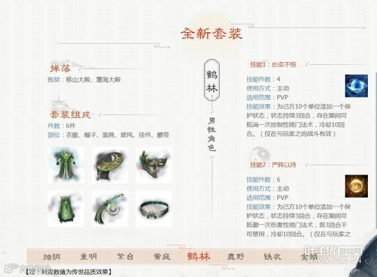 男性:3件搭配寒鸦、3件搭配容止、3件搭配霄汉、3件搭配燃灯、3件搭配破军、3件搭配雅声