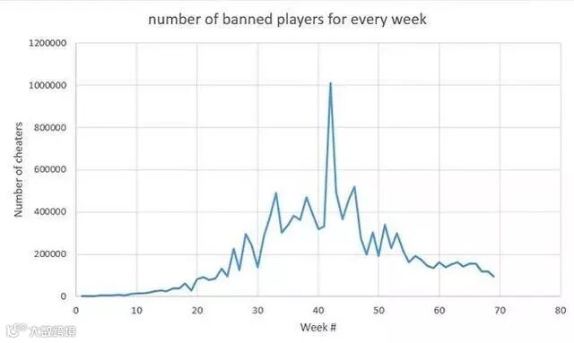 当然,这1300万的被封数只是账号,并非代表玩家人数。因为有不少玩家在使用了外挂被封号后,会选择使用新的账号继续游戏,因此判断真实被封人数并不可行。不过从上面的图表来看,最近几周《绝地求生》的封号数量开始暴跌,似乎也能从侧面证明它的人气正在逐步下降。