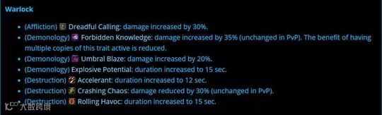 (恶魔) 禁断知识:伤害提高35% (PVP中不变)。降低同时激活多个特质时的叠加效果。