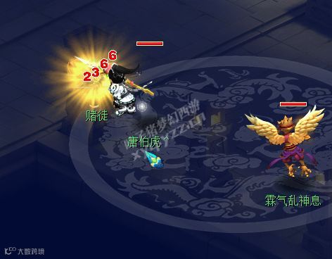 同队狮驼的鹰击,和我的鹰击。我打了符,现在是2076伤。