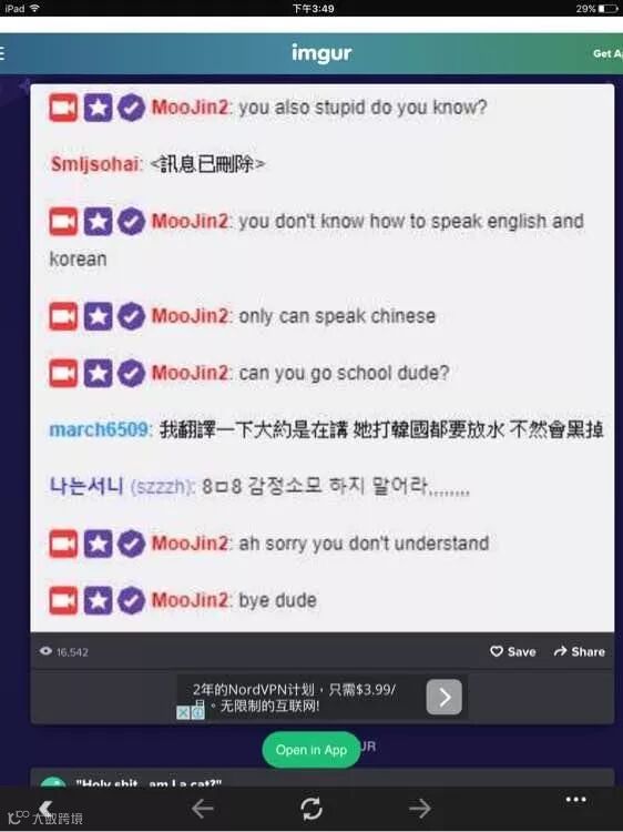 或许是由于在今年S赛上表现不好遭到大量网友批评,加上即将离开闪电狼的原因,Moonjin在近日的直播中再次遇到留言批评他的网友时终于爆发了。面对网友的指责,Moojin连续用英语在直播间中“开喷”: