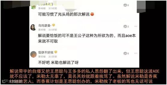 王思聪本身的行为就是不对的,即使有网友在吐槽带宇,你也可以参与,但是用了一个“都”字,就有点过火了,并不是所有的德杯解说都不好啊。长毛,娃娃,米勒以及泽元等都是非常不错的LPL解说。