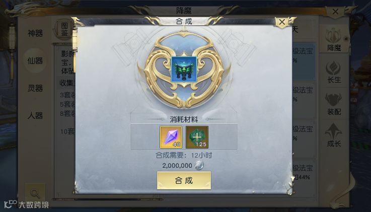 那么重点来了!这么好的法宝在哪里可以找得到呢?还记得前面提到的“无极洞天”吗,这就是成为解锁法宝的关键。法宝碎片可以在无极洞天玩法中获取,也可在解锁后的无极洞天商店兑换或者在商城中购买。解锁法宝需要消耗该分类碎片以及少量其他材料(烹饪、明光玉等),经过固定的时间便可合成法宝。