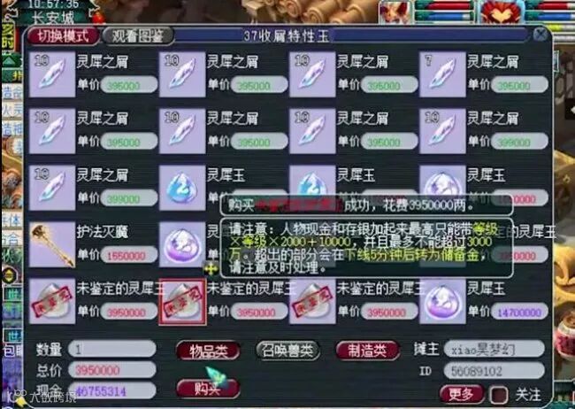 如上图所示,这近一车的未鉴定灵犀玉已经准备好了,要说灵犀玉里最值钱的莫过于“天平”和“蔓延”了,一个3J的就完全足够卖它个6000R的。如果按照1250的比例进行转换,最值钱的约为7E5梦幻币!如果你想问这玩意儿为啥这么贵?看完这波鉴定,你可能就明白了。