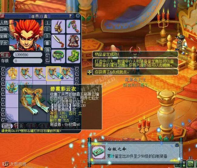 最终结果奉上,看来未强化的装备虽然也能出实用特技,可是从观赏性及属性加成来说,那是远远比不上强化过的!当然,之所以选择未强化,有可能也是因为鉴定者穷。。。