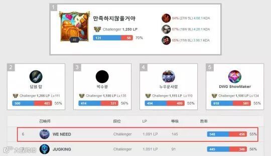 近日有网友发现,目前排在韩服第六的路人选手,被称为“路人王第一波比”的玩家突然将自己的ID改为“WE NEED”,并且曾一度将自己的头像换成了S8赛季的WE战队头像,这也让大家纷纷猜测,WE是否将会迎来一位新人上单。