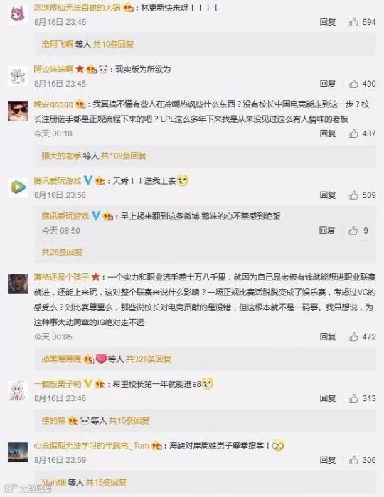 平心而论,iG目前的战绩可谓是一骑绝尘,即使让校长出战输掉比赛对iG的名次也不会造成太大的负面影响。不过王校长作为老板,在这个早已不适合当选手的年龄依然想尝试登场比赛,这一点也足以证明他对电子竞技的热爱。不知对于王思聪申请成为LPL选手一事各位小伙伴怎么看?欢迎说出你的看法!