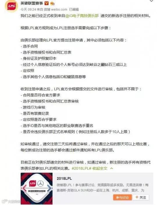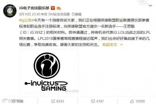 今天早上,《英雄联盟》官方对此事进行了回复,表示已收到来自iG的新选手注册相关材料。