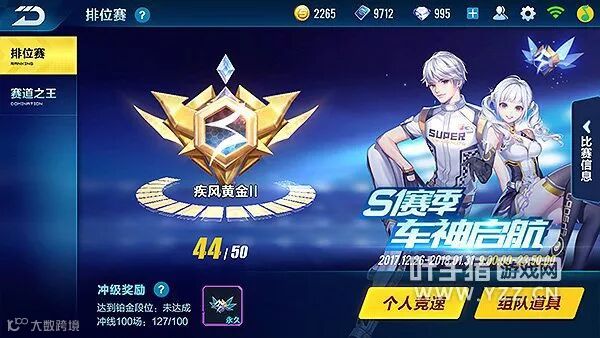 游戏在高级后有排位模式。但排位只能以个人竞速或组队道具的形式参加,每局里只有进入前3的会加排位分。