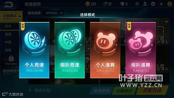 而游戏里目前主要分为个人赛与组队赛,当中又各自包含了竞速赛和道具赛之分。