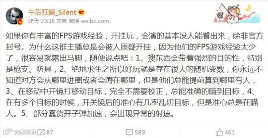 随后姥爷又告诉了网友5个识别外挂的方法,其中有4个都在蛇哥的直播中出现过,可以说是明示蛇哥开挂了。