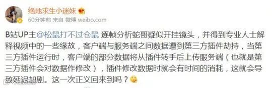他还说,正常玩家玩一百局可能有几局跳秒的现象,而蛇哥本局游戏就出现3次跳秒,还都是出现在瞄人的时候。