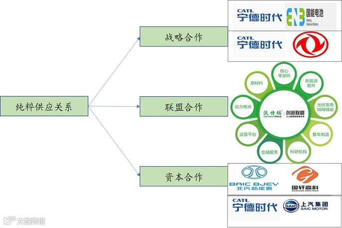 目前电池企业与车企已经不满足于简单的供求关系,越来越多的企业选择更深层次的战略合作,例如战略合作、联盟合作和合资等合作模式。