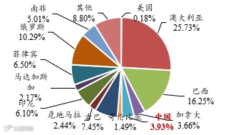 全球镍储量澳大利亚和巴西占4成