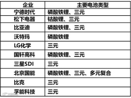 2017年全球前十动力电池企业主要电池类型