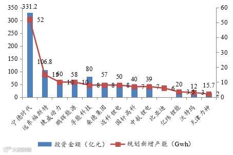 2017年主要动力电池企业投资扩产情况