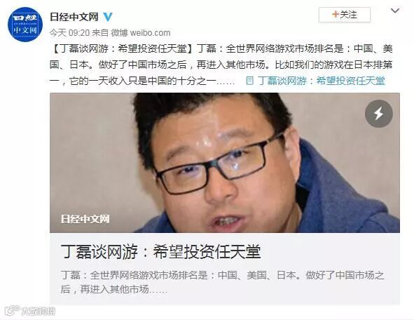 恰是在这个时期,日本经济新闻的中文官方微博日经中文网公开了对丁磊的采访内容。在谈到海外投资主要在游戏设计方面的时候,丁磊表示希望能对日本的游戏大头任天堂进行投资。