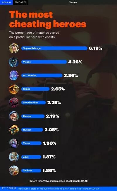 时至今日,游戏内出现外挂可以说是无法避免。而国外数据分析团队GOSU则针对DOTA2公开了一项统计,是有关作弊玩家都爱使用什么英雄的。各位玩家猜得出第一位是谁吗?