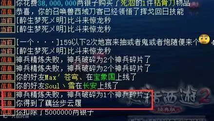 正精炼神兵呢,忽然就出现碎裂50把的功绩,然后...藕丝就来了...