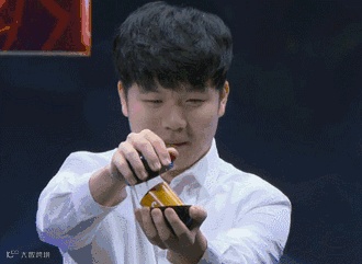 首先我们来看看负责抽签的小胖子Rookie在抽到SKT时的表情: