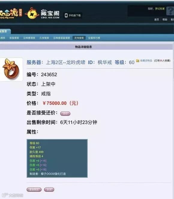 个人认为这个戒指的价格应该大于国标60戒指的3伤1爆,与60爆属性的3伤一爆差不多价格。