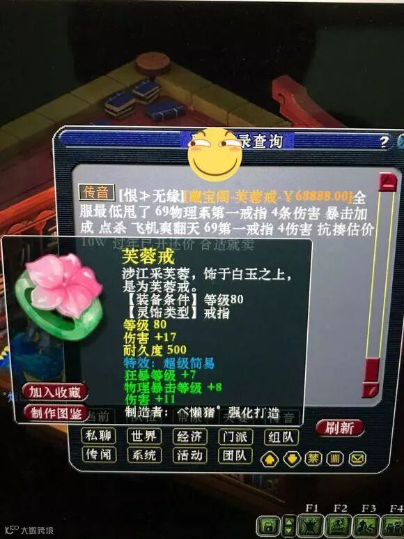 有位玩家发传音:这个灵饰抗揍估价10W,先来先有啊!