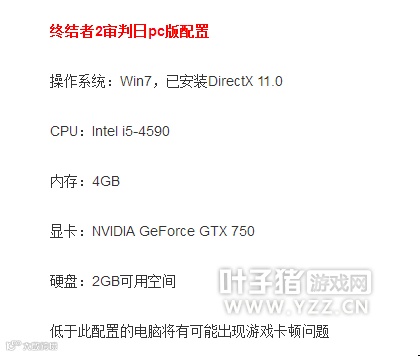 关于《终结者2》PC服的配置要求,当然比《绝地求生》低了不少,相信主流电脑都能驾驭。不过值得注意的是,PC服暂时不支持WinXP操作系统。