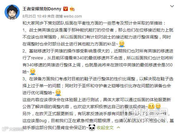 近日,王者荣耀策划Donny在微博上爆料了近期游戏中的改动计划。在本次的调整计划中,针对部分战士英雄在突进和爆发方面甚至要强于刺客的情况做出了调整,下面我们就来看看这次调整的具体内容吧!