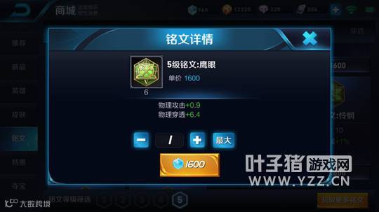 鹰眼x10:物理攻击+0.9、物理穿透+6.4