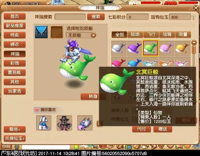 相信各位小伙伴都知道,梦幻即将推出新的飞行祥瑞——北冥巨鲸。接下来,小编就为大家带来“北冥巨鲸”的游戏效果图!