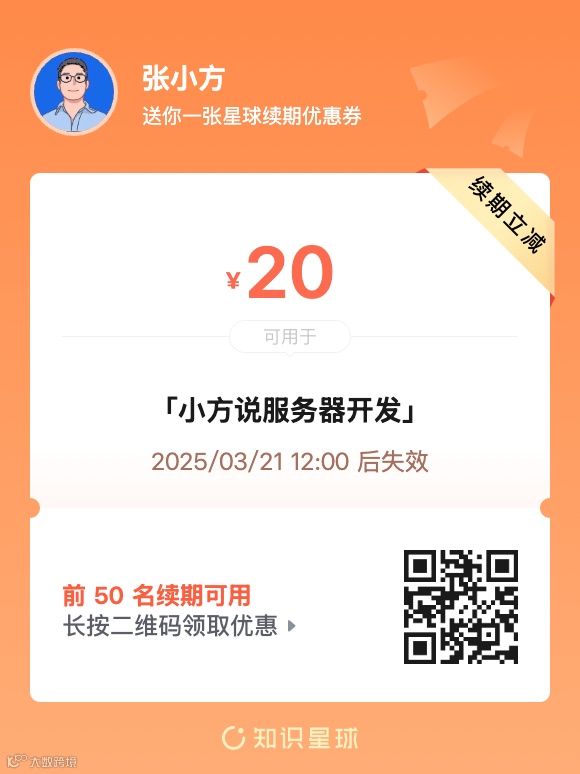 专栏对全体小方说服务器开发知识星球球友开发,加入星球后,看置顶帖子即可阅读。