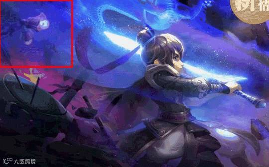 大家肯定都看过了吧,但注意到一个地方没有,会动的地方除了2个角色的仙气、剑侠客的轩辕剑之外,就还有边边区域的一个未知物品,剑侠客头上的龙都不动你一个小物件动什么动,于是成功吸引了我的注意力。