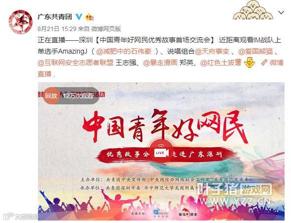 昨日下午,广东共青团官微发布了一条动态,从该动态中可见,IM战队上单选手、“LPL吴彦祖”AmazingJ出席了“中国青年好网民优秀故事交流会”,并且在活动现场发表了演讲。