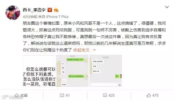 随后西卡又补发了一条微博,在这条微博中西卡正式向风哥道歉,并表示希望风哥能“大人不记小人过”。不过西卡的暴躁性格是人尽皆知的,在这条微博的最后,西卡对这件事的始作俑者表示:“那个领队背后说这样的话,我只能对你说,你是个脑残”。