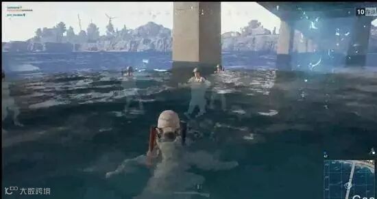 上图可见,安全区已经缩小到了桥上,不过图中只有这位玩家自己,那么剩下的其他8个人都在哪里呢?