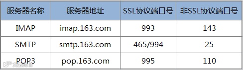 网易163免费邮箱相关服务器信息: