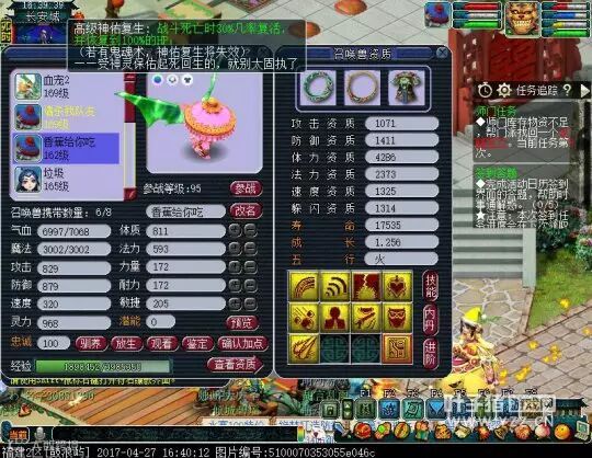 鼓浪屿159的MW号,育兽术满,潜能果也满,4只坐骑成长满!