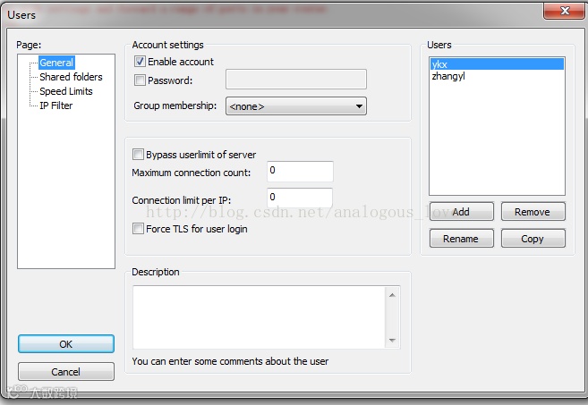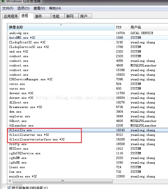 服务器端包括,两个程序,一个是以windows服务形式运行的filezillaserver,另外一个是对服务器端连接的用户账号、共享目录等信息进行控制的filezillaserverinterface: