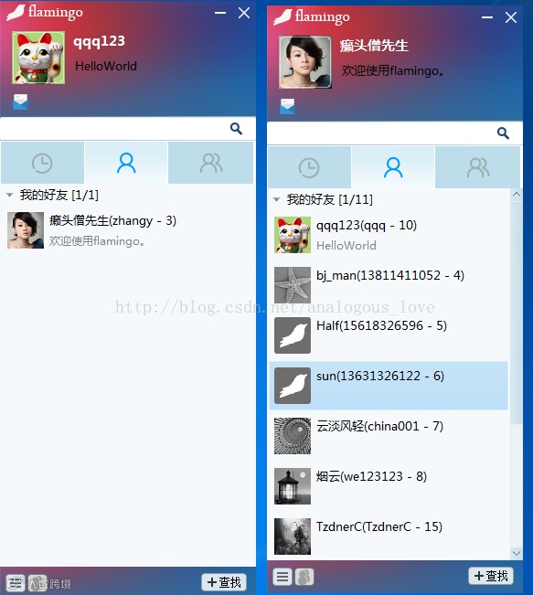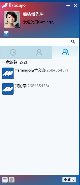 FlamingoIM是我自己研发和开源的一款轻量级开源即时通讯软件,其目前有服务器端、pc端和安卓端,三端都是 native 应用,从通信协议到界面库都自主开发,不是使用第三的库包装而成。以下是部分截图: