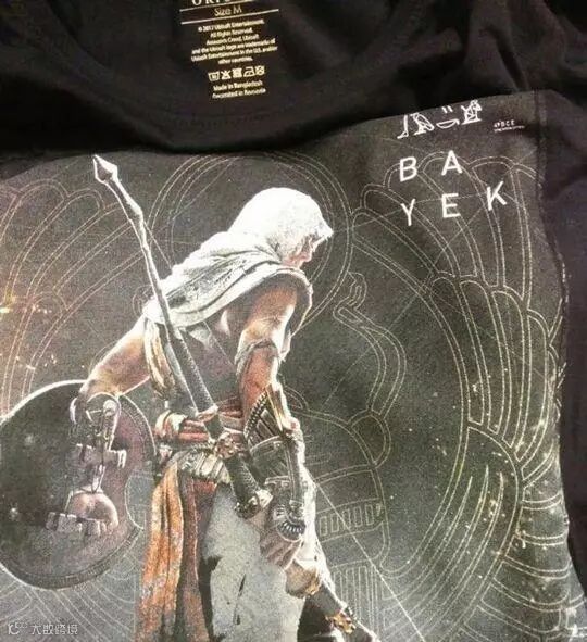 经过育碧两年多打磨、以埃及为背景的《刺客信条:起源》公布在即,近日有玩家在美国著名游戏周边店“GameStop"时意外发现了本作的宣传T恤衫,上面不仅印有游戏Logo和标志性的“荷鲁斯之眼”,同时本作的主角也赫然在上!