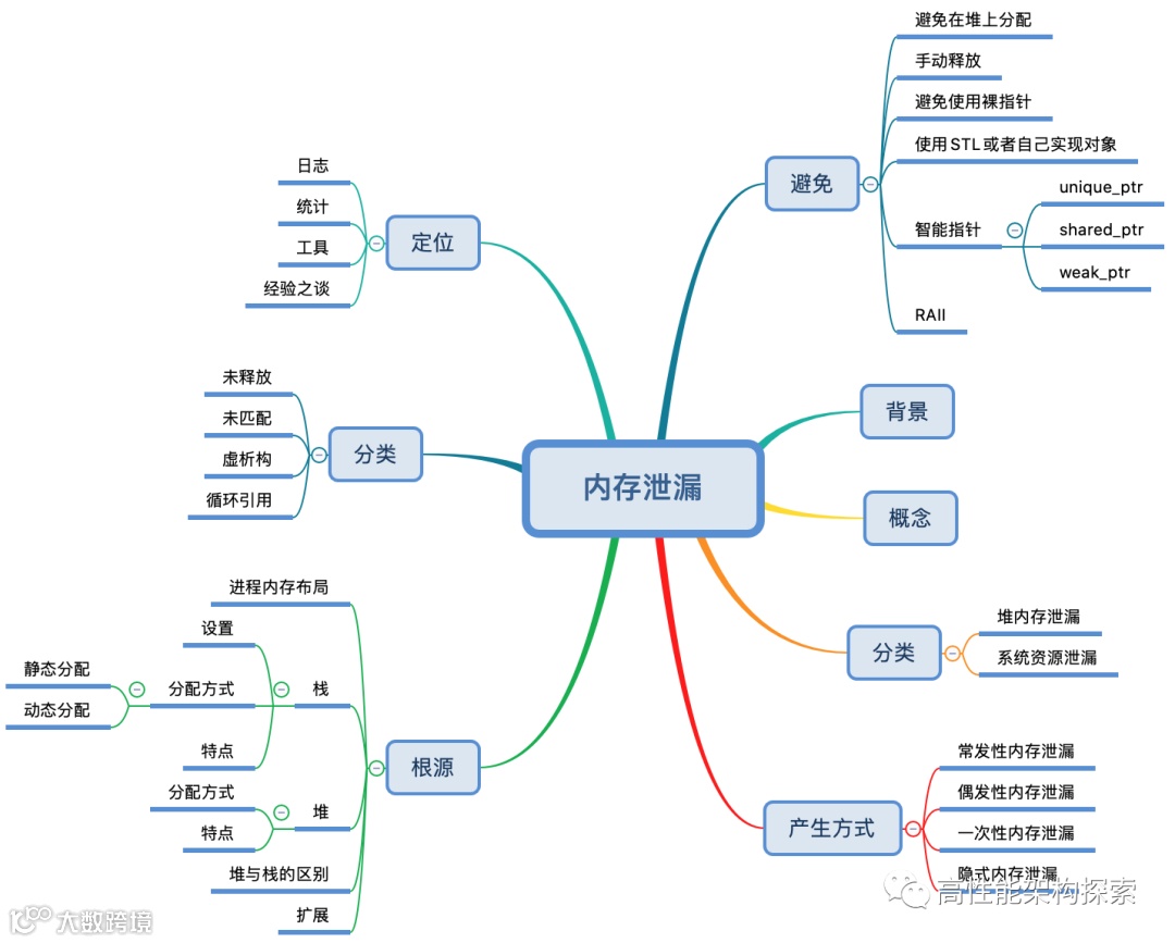 内存泄漏,主要指的是在堆(heap)上申请的动态内存泄漏,或者说是指针指向的内存块忘了被释放,导致该块内存不能再被申请重新使用。