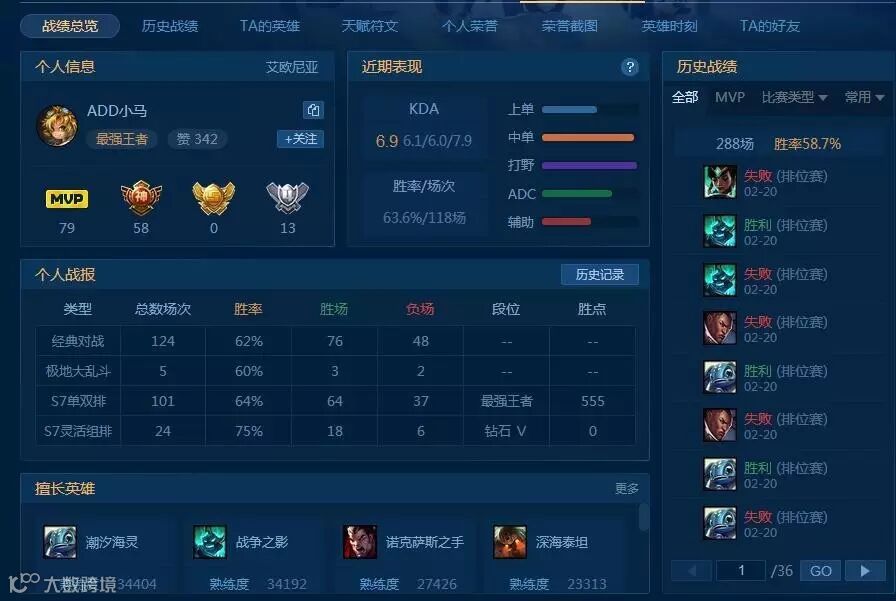 S6国服第一王者ADD小马再登顶S7单双排TOP1